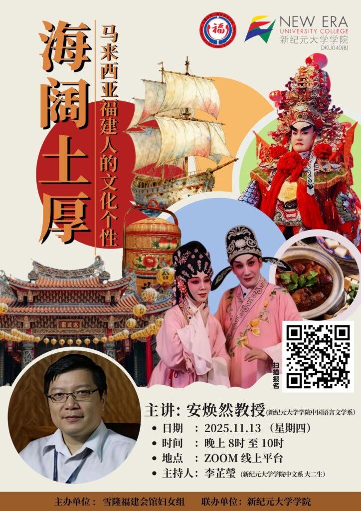 安焕然教授将带领我们,从历史与社会脉络出发,重新认识马来西亚福建人如何在多元文化的土地上,展现独特的文化个性与生命价值。