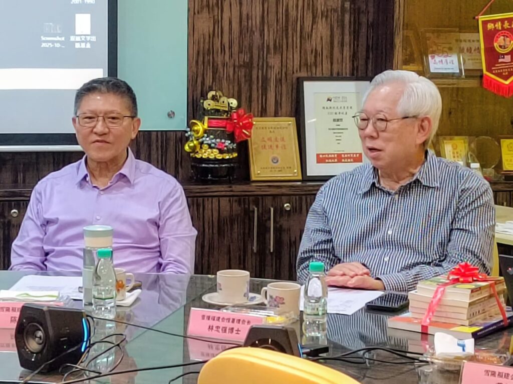 🏛️ 交流会上,总务戴炳基代表会馆热烈欢迎代表团到访;陈炳钟会长随后介绍了会馆自1885年创立以来的百年发展历程。雪隆福建会馆作为福建籍乡团的重要精神依托,自创会以来长期协助同乡安身立命、排忧解难;在英殖民地时期更积极创办吉隆坡中华学校及之后的中华国中和中华独立中学、以及中华女校四所华教学府,为当地华社传承中华文化做出巨大贡献。同时,会馆亦发展威镇宫(观音寺)、福建义山、“双福文学”文化基金及“华罗庚数学比赛”等文化与公益项目,持续推动马华文学、教育与社群建设。