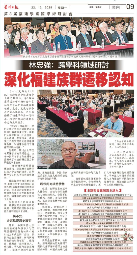 雪隆福建会馆举办第三届福建学国际学术研讨会“第二天:深化福建族群迁移认知的跨学科研讨。