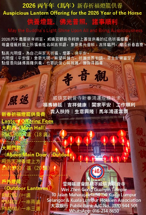 📲 If you wish to offer a New Year blessing lantern, please send your name and bank transfer slip via WhatsApp to 016-214 8650.