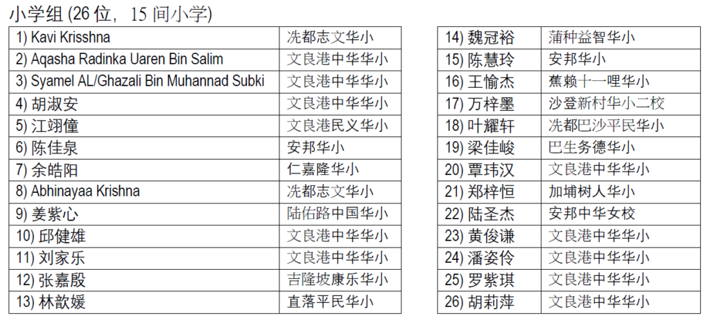 各受惠中小学学生名单兹列如下: